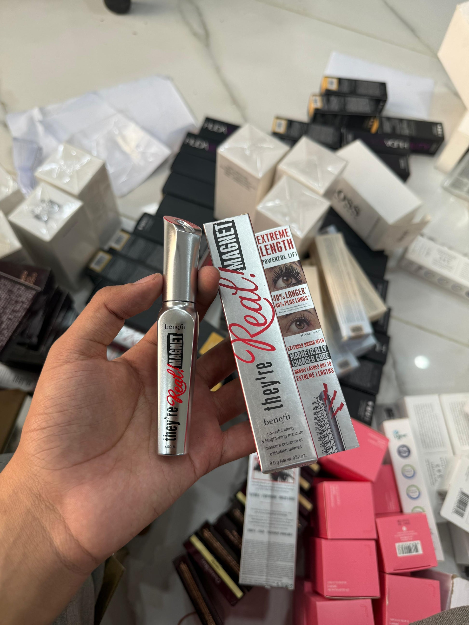 Experience magnetic lashes that defy gravity. Benefit's They're Real Magnet mascara combines extreme lengthening with powerful lifting technology to create bold, dramatic eyes that command attention. The innovative formula grips every lash from root to tip, delivering volumized definition and a fierce lift that lasts all day. Transform your gaze into a statement of confidence and allure.