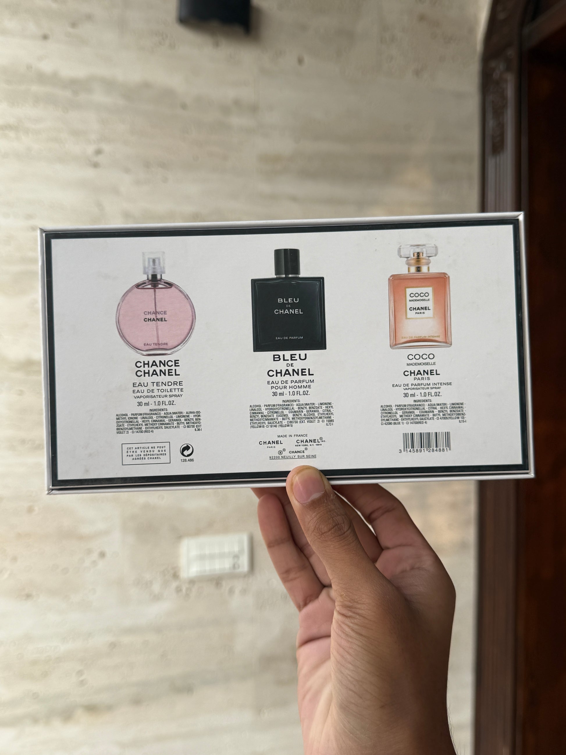 Unleash your signature scent with the Blue de Chanel Mini Perfume Set—three 3ml bottles of pure sophistication. Perfect for the bold man who refuses to compromise on fragrance. Slip these sleek miniatures into your pocket, gym bag, or travel kit and command attention wherever you go. Each bottle captures the iconic blend of citrus, ambroxan, and cedar that defines modern masculinity. Compact yet powerful, this set lets you experience luxury on your terms.
