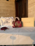 Unleash your bold side with this striking COACH bag that commands attention. The rich brown canvas meets vibrant red patterning in a fearless design that refuses to blend in. A playful cherry charm dangles from the handle, adding an unexpected touch of personality and whimsy. Perfect for those who dare to make a statement with their accessories, this bag combines Coach's legendary craftsmanship with daring style. Whether you're heading to the office or out on the town, carry confidence in every step.