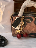 Break free from ordinary with this fearless Coach bag in warm brown leather, finished with an arresting black pattern that demands recognition. This isn't your typical carryall—it's a power move wrapped in premium craftsmanship. The adorable cherry charm swinging from the handle adds a touch of daring whimsy, proving that luxury and personality aren't mutually exclusive. Built for rebels who refuse to compromise on style or substance, this bag transforms any ensemble into something unforgettable. Carry it like you own it.