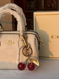Elevate your everyday with this striking Coach bag that refuses to play it safe. The crisp white pattern commands attention while the playful cherry charm adds an unexpected twist of personality. Crafted with Coach's signature quality, this bag seamlessly transitions from boardroom to brunch, proving that sophistication doesn't mean boring. Make a bold statement with a piece that's as fearless as you are.