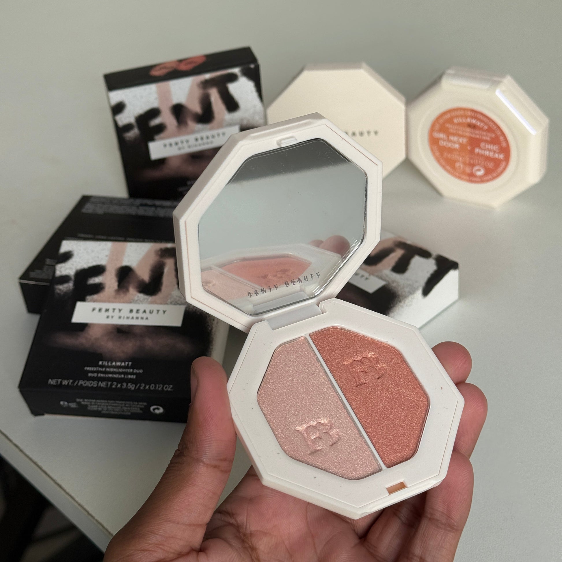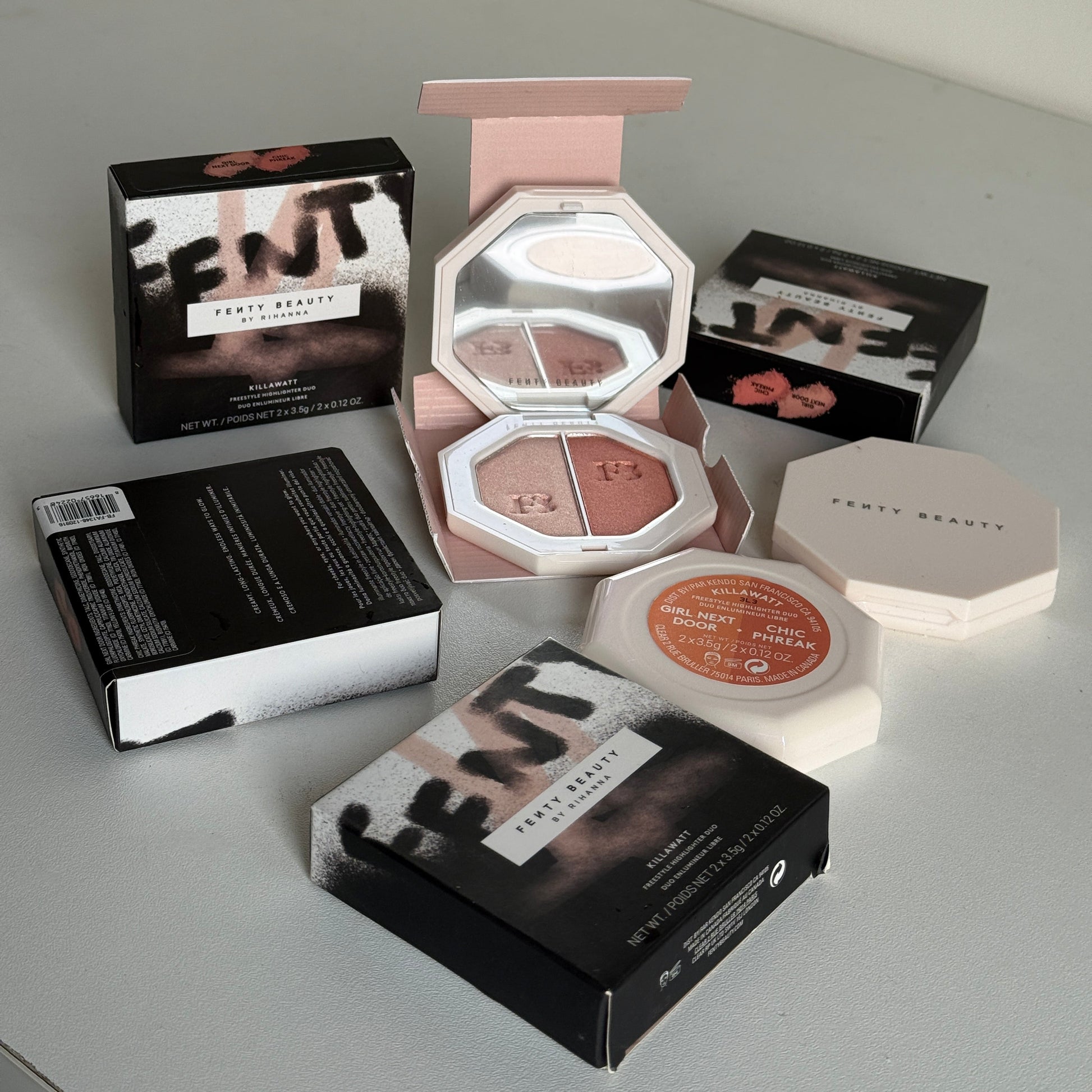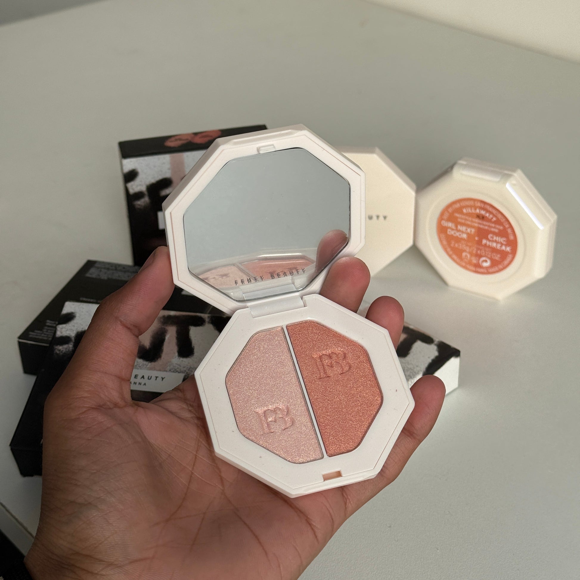 Unleash your glow with Fenty Beauty's Killawatt Freestyle Highlighter Duo—two fearless shades that refuse to play it safe. Girl Next Door delivers a luminous, wearable radiance, while Chic Phreak pushes boundaries with its bold, statement-making shimmer. These freestyle highlighters blend seamlessly for a customizable finish that's entirely yours. Whether you're building a subtle gleam or going full-on radiant, this duo gives you the power to sculpt, highlight, and shine on your own terms. Dare to glow differently.