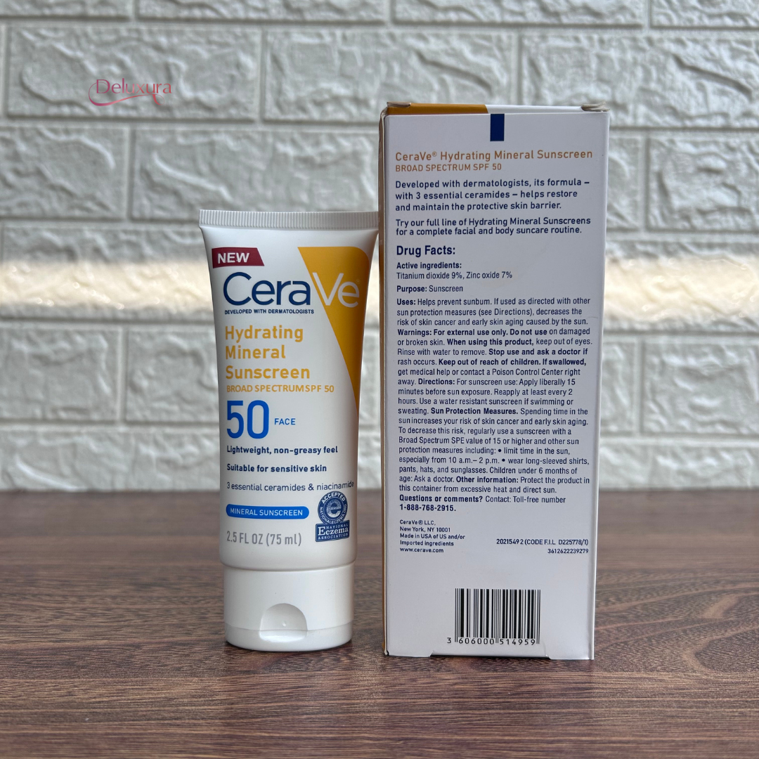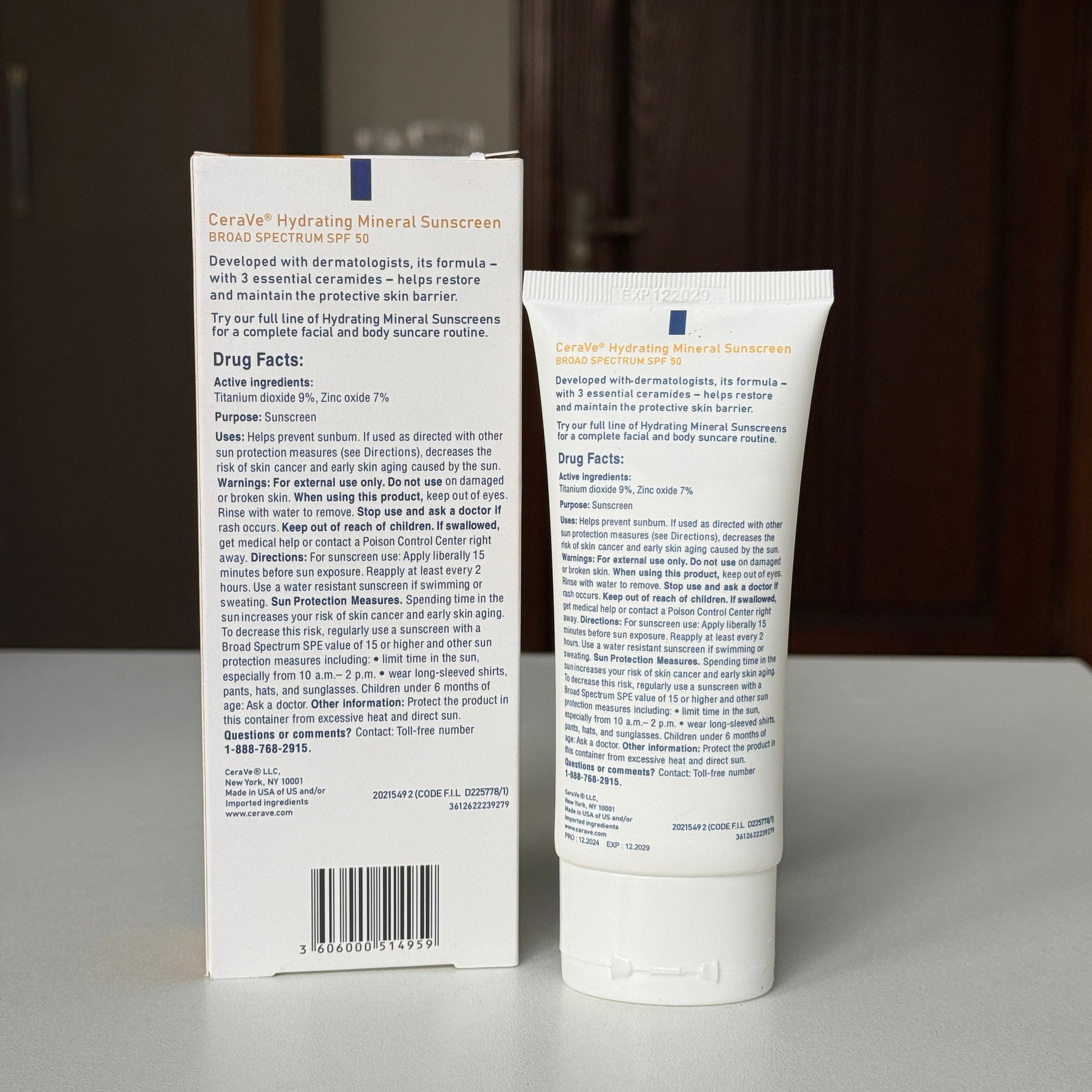 "CeraVe Hydrating Mineral Sunscreen SPF 50: Daily sun defense and hydration in one. Broad-spectrum SPF 50 protection with ceramides and niacinamide for all skin types. Choose CeraVe for sun-smart skincare."
